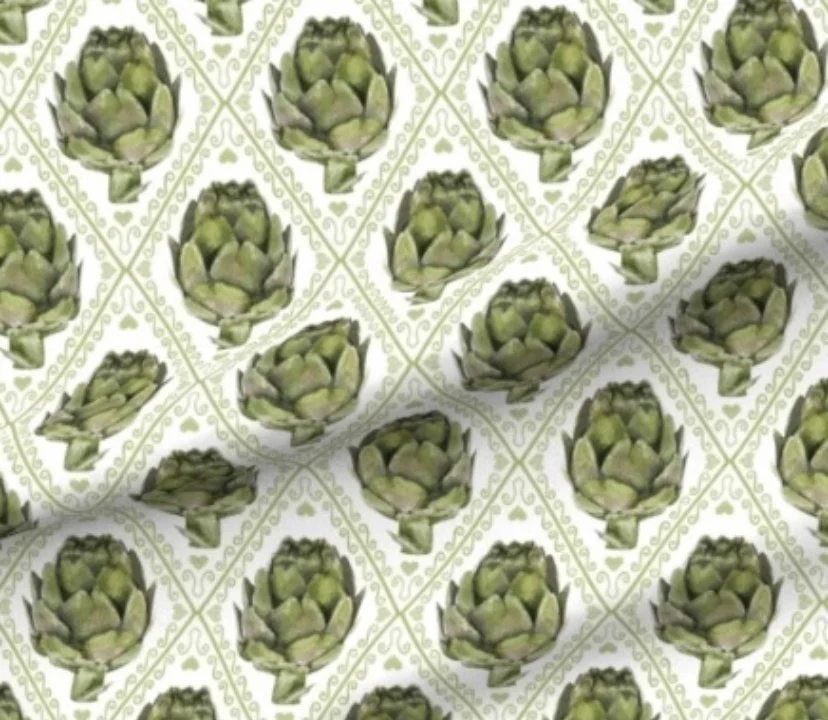 I found some custom artichoke fabric on www.Spoonflower.com and took the fabric to Jane ~ and like magic! Three fantastic artichoke aprons!